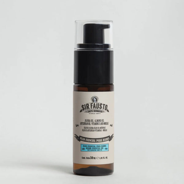Después de haber higienizar tu barba con Shampoo para Barba Sir Fausto, ligeramente húmeda y dependiendo de la longitud de la misma, aplica de 2 a 5 gotas en ambas palmas de las manos y distribuye el óleo tanto en el vello de la barba como en la piel. Tip: utiliza el secador de cabello con aire templado para eliminar los rastros de humedad y lograr un mayor control y pulido sobre el vello de la barba. Con 20 o 30 segundos es suficiente. Resultado: Obtendrás una barba brillante, suave, con un ligero control del vello facial. Producto destinado al cuidado de la piel, styling y cuidado de la barba. La característica más importante del óleo es que no deja aspecto aceitoso ni grasoso en la barba y piel. Regula la secreción sebácea y regenera el colágeno y elastina.